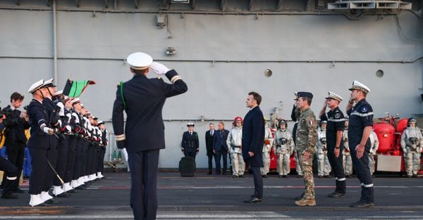 Recentemente visitata in mare aperto da Macron, la Charles de Gaulle è l’unica nave di superficie a propulsione nucleare costruita in Europa occidentale. Entrata in servizio nel 2001, imbarca 20 caccia Rafale, due aerei spia Hawkeye e tre elicotteri.