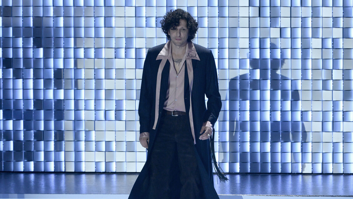 Ermal Meta con il nome di una bimba di Gaza cucito sul vestito