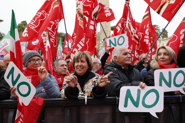 E poi contributi video che hanno spaziato da quello di Marisa Laurito a quello dell’ex ministro Rino Formica. Chiusura con Daniele Silvestri dal vivo e poi, sparata dalla regia: “Bella ciao”. I leader politici sono arrivati alla spicciolata. Bonelli prima di tutti. Poi Fratoianni. Poi Schlein, che si è fermata a lungo in mezzo alla piazza, coi manifestanti. E infine Conte. Forse per i sondaggi, almeno gli ultimi che si potevano diffondere, forse perché il colpo d’occhio della piazza incoraggiava, forse perché non si poteva fare altrimenti, ma dal palco sono arrivati grandi attestati di ottimismo. “C’è un’inarrestabile avanzata del no – ha detto Bonelli – perché c’è un’inarrestabile indignazione degli italiani. La presidente del Consiglio si dovrebbe vergognare per quello che ha detto: se vince il No gli stupratori saranno lasciati liberi. In qualsiasi altro Paese civile sarebbe stata accompagnata verso le dimissioni”.